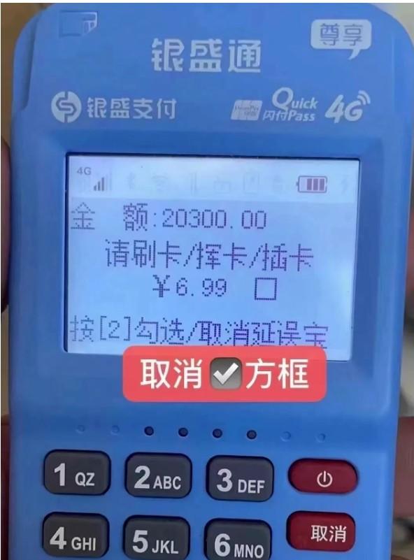 過去,使用銀XPOS機(jī)進(jìn)行交易時(shí),默認(rèn)是不勾選保險(xiǎn)費(fèi)的,開通需要在屏幕上點(diǎn)擊打鉤確認(rèn),但現(xiàn)在卻悄悄地變成了默認(rèn)勾選狀態(tài)。