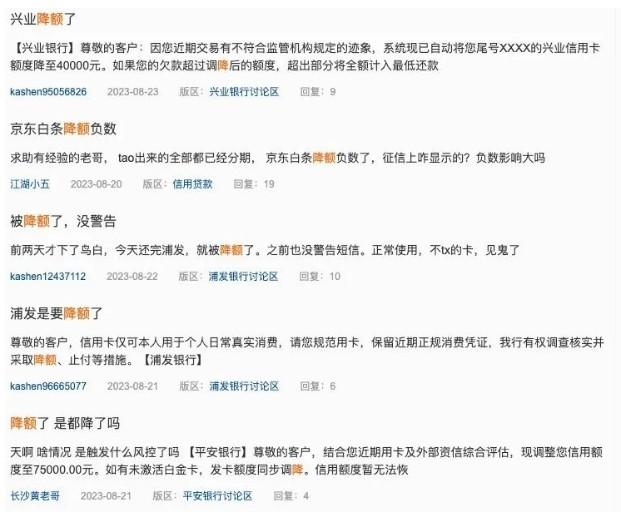 其中,有的是2萬多突然降到3000,有的是正常用卡但還款秒降,更狠的還有浦發銀行,20W直接降到10W,對半砍的大有人在!