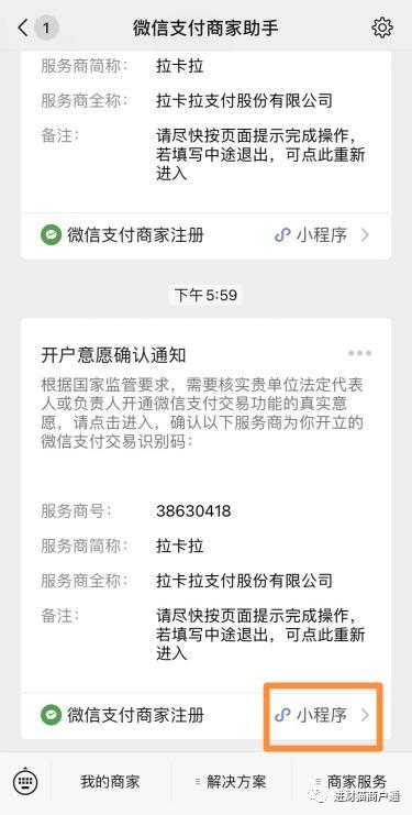 拉卡拉POS機微信支付認證操作流程 lakala 2年前 ( 2024-03-24 ) 6237 一、根據(jù)商戶入網(wǎng)的設備類型選擇對應二維碼,微信掃碼進入“微信商家注冊”頁面;二、進入微信商家注冊頁面進行根據(jù)實際情況填寫資料,這里以“小微商戶”為例;三、進行核實商戶號,并綁定(可在商戶登記處查詢)四、綁定成功,關機重啟即可使用微信掃碼 The End 標簽:博主很懶,并沒有設置標簽