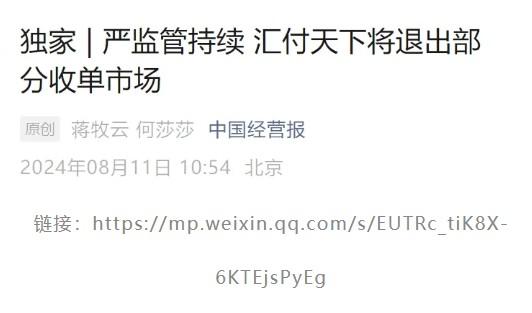 8月11日,中國經營報獨家發布新聞稱,匯付天下將退出部分收單市場。